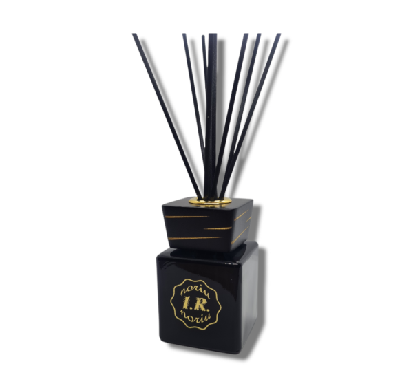 • indelis su namų kvapu, kamštelis ir 9 juodos spalvos pluoštinės nendrės lazdelės.